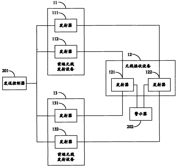 本實用新型實施例公開了無線安防報警系統(tǒng)和裝置。其中,無線安防報警系統(tǒng)包括前端無線發(fā)射設備和無線接收設備,前端無線發(fā)射設備包括多個在發(fā)生警情時發(fā)送報警信號的發(fā)射器,任一發(fā)射器所發(fā)送報警信號的頻率與其他發(fā)射器所發(fā)送報警信號的頻率處于不同頻段;無線接收設備包括與多個發(fā)射器一一對應的多個接收器。可見,本實用新型實施例中任一發(fā)射器-接收器所工作的頻段與其他發(fā)射器-接收器所工作的頻段均不相同。當工作于某個頻段的接收器遭受同頻干擾或鄰頻干擾時,其他頻段的接收器還可與對應的發(fā)射器保持正常通訊,從而解決了現(xiàn)有的、只使用單一頻段的無線安防報警系統(tǒng)因受到同頻干擾或鄰頻干擾而導致的漏報警問題。 |