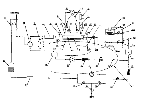 本發(fā)明涉及一種管內(nèi)制冷劑含油蒸發(fā)/冷凝傳熱測試一體裝置及其測試方法,裝置的特征是包括通過管道順序連接的冷凝器、回收罐、動力泵、調(diào)節(jié)閥、制冷劑質(zhì)量流量計、均勻調(diào)和槽、蒸發(fā)預熱/冷凝預熱并聯(lián)選擇通路、蒸發(fā)/冷凝測試段、加熱器、高效油分離器、冷凝器的制冷劑回路;通過管道順序連接的高效油分離器、貯油器、高壓油泵、潤滑油質(zhì)量流量計、控制閥、均勻調(diào)和槽、蒸發(fā)預熱/冷凝預熱并聯(lián)選擇通路、制冷劑蒸發(fā)/冷凝測試段、加熱器、高效油分離器的潤滑油注油回路;以及通過管道順序連接的換熱器、水加熱器、水泵、水質(zhì)量流量計的蒸發(fā)/冷凝測試段換熱回路??蛇M行不同制冷劑管內(nèi)蒸發(fā)冷凝傳熱測試和制冷劑含油率對換熱管蒸發(fā)冷凝傳熱特性影響測試,方便、可靠。 |