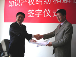 簽字儀式現(xiàn)場                                        集佳律師遲松代表德國SEW與中方代表交換協(xié)議