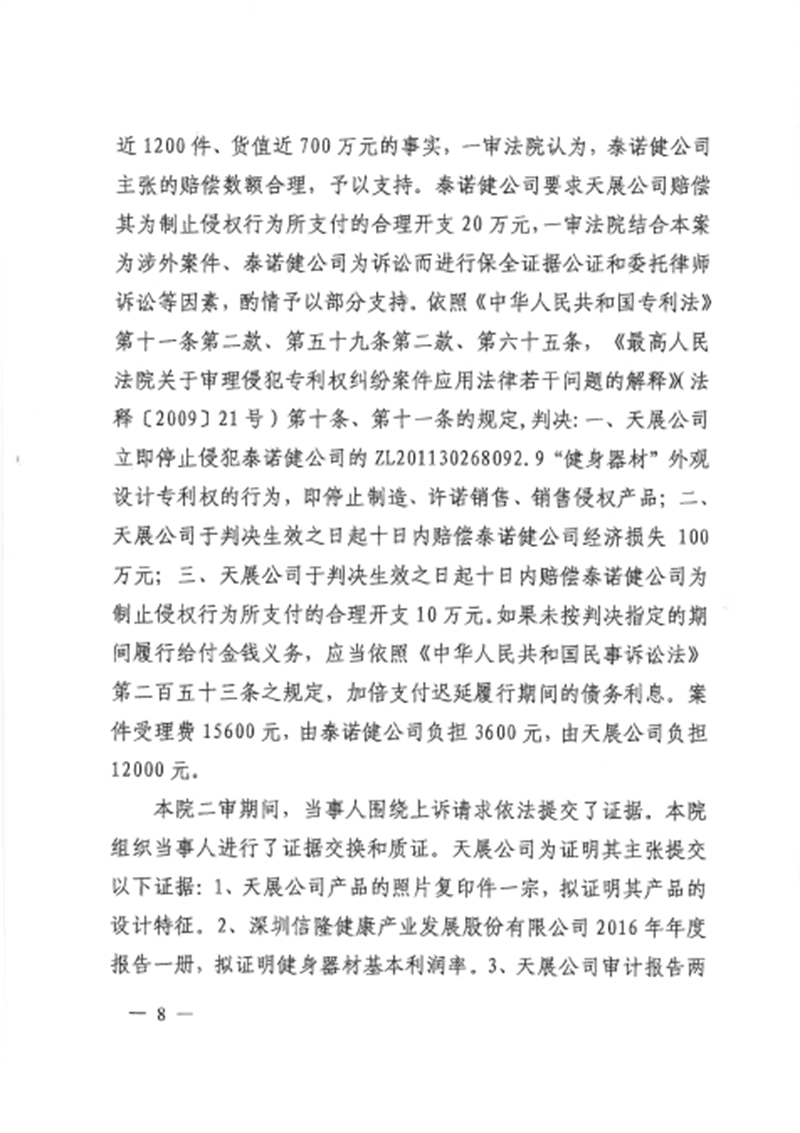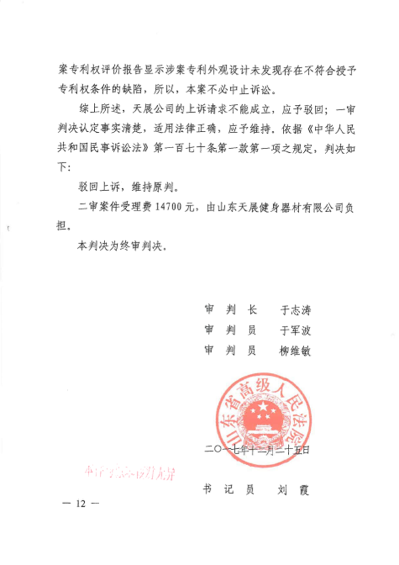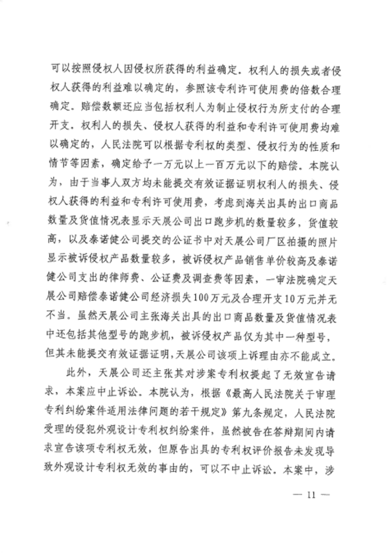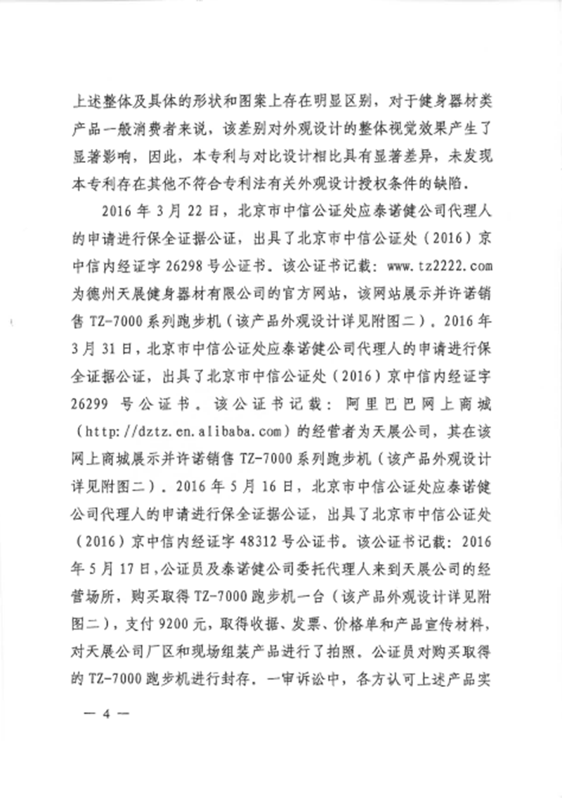 集佳代理意大利泰諾健公司訴山東天展健身器材有限公司(以下簡(jiǎn)稱(chēng)“天展公司”)侵害外觀設(shè)計(jì)專(zhuān)利權(quán)糾紛一案,經(jīng)濟(jì)南中院一審((2016)魯民初1656號(hào))、山東高院二審((2017)魯民終797號(hào)),我們已于近日收到由山東高院做出的終審判決。山東高院駁回被告上訴,維持一審判決,認(rèn)定被告天展公司生產(chǎn)、銷(xiāo)售、許諾銷(xiāo)售的被控侵權(quán)跑步機(jī)產(chǎn)品落入涉案專(zhuān)利權(quán)保護(hù)范圍,并支持了原告泰諾健公司主張的停止侵權(quán)行為、賠償經(jīng)濟(jì)損失及合理維權(quán)費(fèi)用等請(qǐng)求。