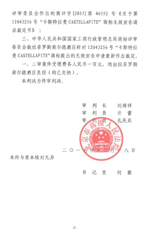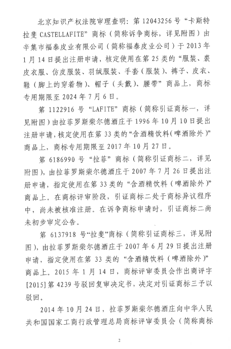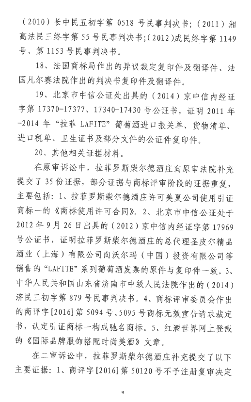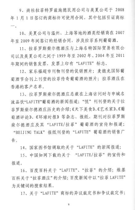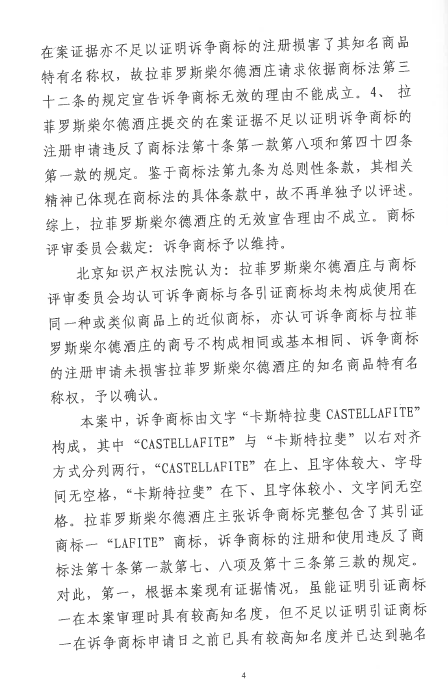 自2016年以來(lái),商評(píng)委、北京知識(shí)產(chǎn)權(quán)法院已經(jīng)先后在十幾個(gè)裁定或行政判決中認(rèn)定“LAFITE”為馳名商標(biāo),但大多還在行政訴訟程序之中。本案是首個(gè)終審判決,對(duì)“LAFITE”在中國(guó)的馳名商標(biāo)保護(hù)之路,具有里程碑式的重要意義。